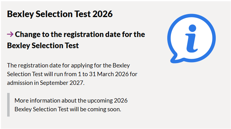 The Bexley 11 plus exam registration for 2026 has changed. The registration period will now run from 1 March 2026 to 31 March 2026.